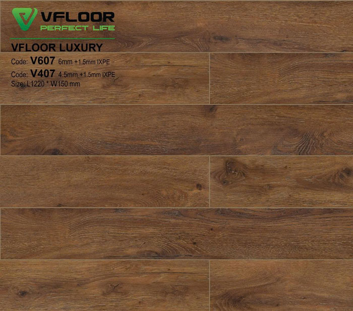 Sàn nhựa spc Vfloor V407 được mô phỏng sàn gỗ, màu sắc đẹp, dễ kết hợp nội thất trong nhà.